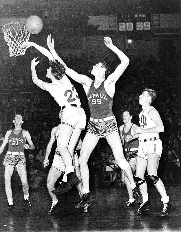 Before Mikan entered DePaul University in 1942, players of his height — he was 6’10 — were considered inferior to those who were shorter and more nimble. Still, first-year DePaul coach Ray Meyer believed Mikan could use his height as an advantage and turned the clumsy freshman into one of the most dominant players of his time.